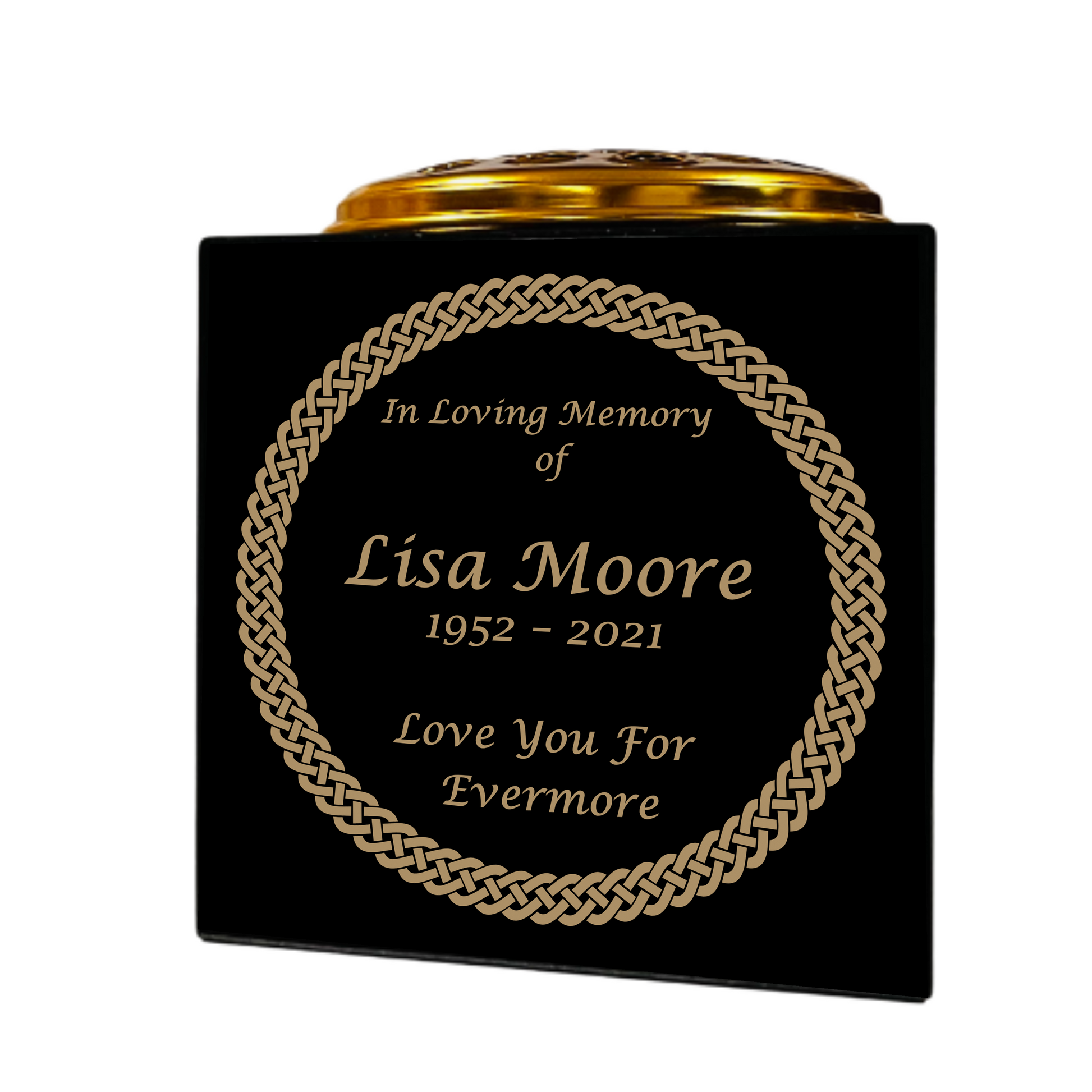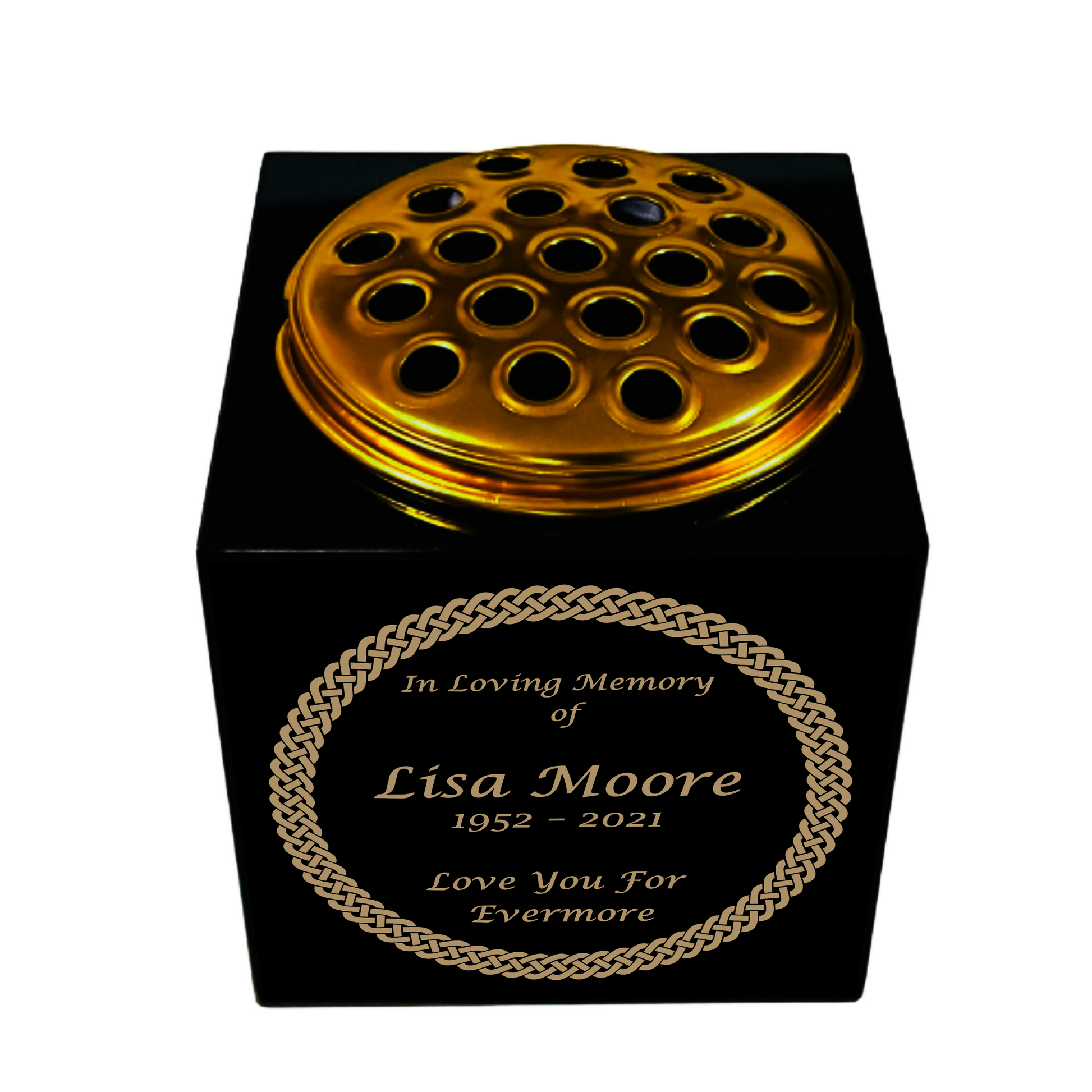 Premium Black Granite Memorial Vase- Solid Square Shape Vase – Free Personalised Gold Engraving - Celtic knot 1 Design – Metal Flower Insert – 3 different sizes available