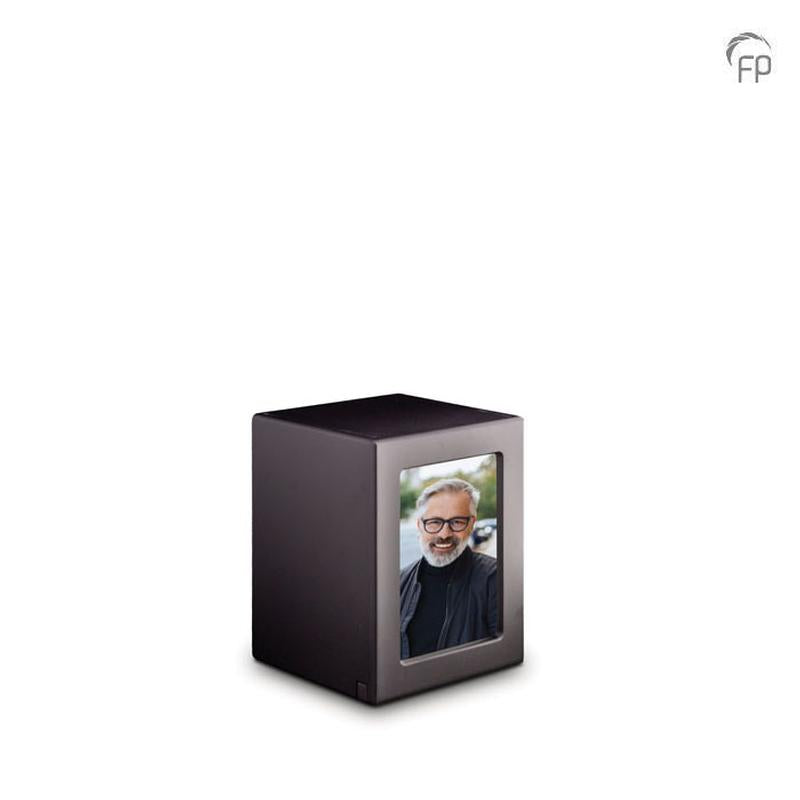 This elegant MDF photo urn is designed in the shape of a box and features an insert to display a cherished photograph of a loved one. Finished in sleek black, it provides a dignified and contemporary memorial piece that complements any home setting.
